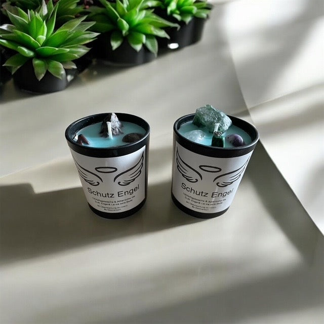 Schutzengelskerze mit Überraschung – Handgegossen mit Natursteinen & verborgenem Geschenk